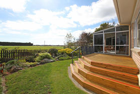 Outside, the land includes three flat acres and a landscaped section, large four bay shed, haybarn, loading yards and a separate sleepout. Two car garaging plus workspace, separate lounge and conservatory completes the package.