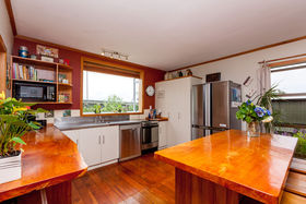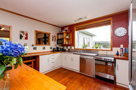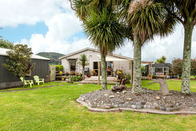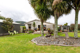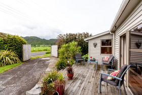 Behind closed gates this lovely 1950's 3 bedroomed renovated home is instantly captivating. Beautifully presented with character, polished timber floor boards and open plan living with a separate lounge and a cosy wood burner with a stunning kaitake ranges bush backdrop