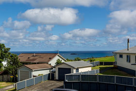 The 3 bedroom home is tidy in and out, with single basement garage, and open plan living flowing to a deck (with sea views) and to a private fenced back yard.
